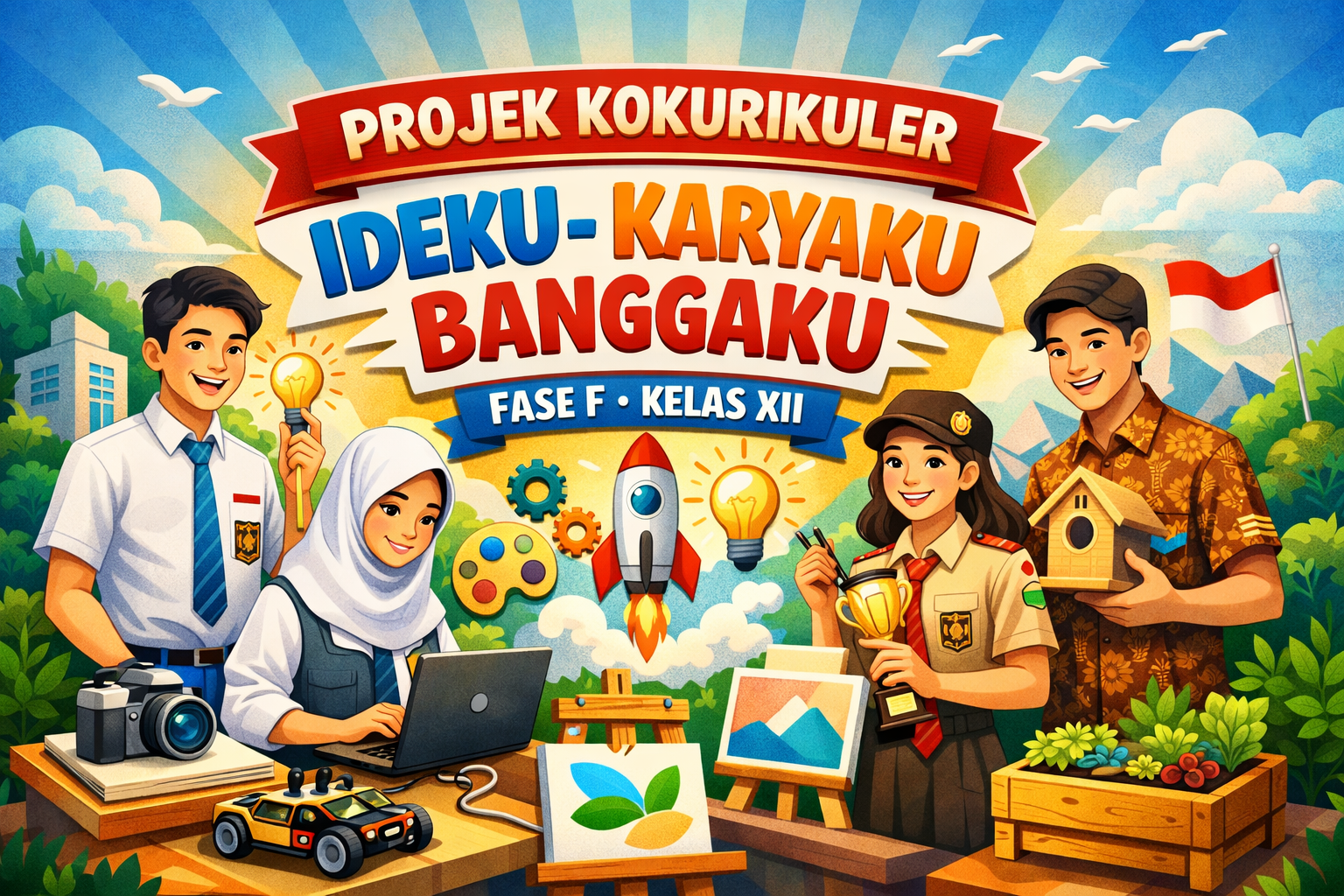 Projek “Ideku, Karyaku, Banggaku” merupakan kegiatan pembelajaran berbasis projek yang dilaksanakan melalui serangkaian proses eksplorasi ide, perencanaan, pembuatan karya, evaluasi, hingga refleksi. Murid diberi ruang untuk mengamati permasalahan di lingkungan sekitar, mengembangkan solusi kreatif, serta menghasilkan karya nyata yang relevan dengan konsentrasi keahlian masing-masing.